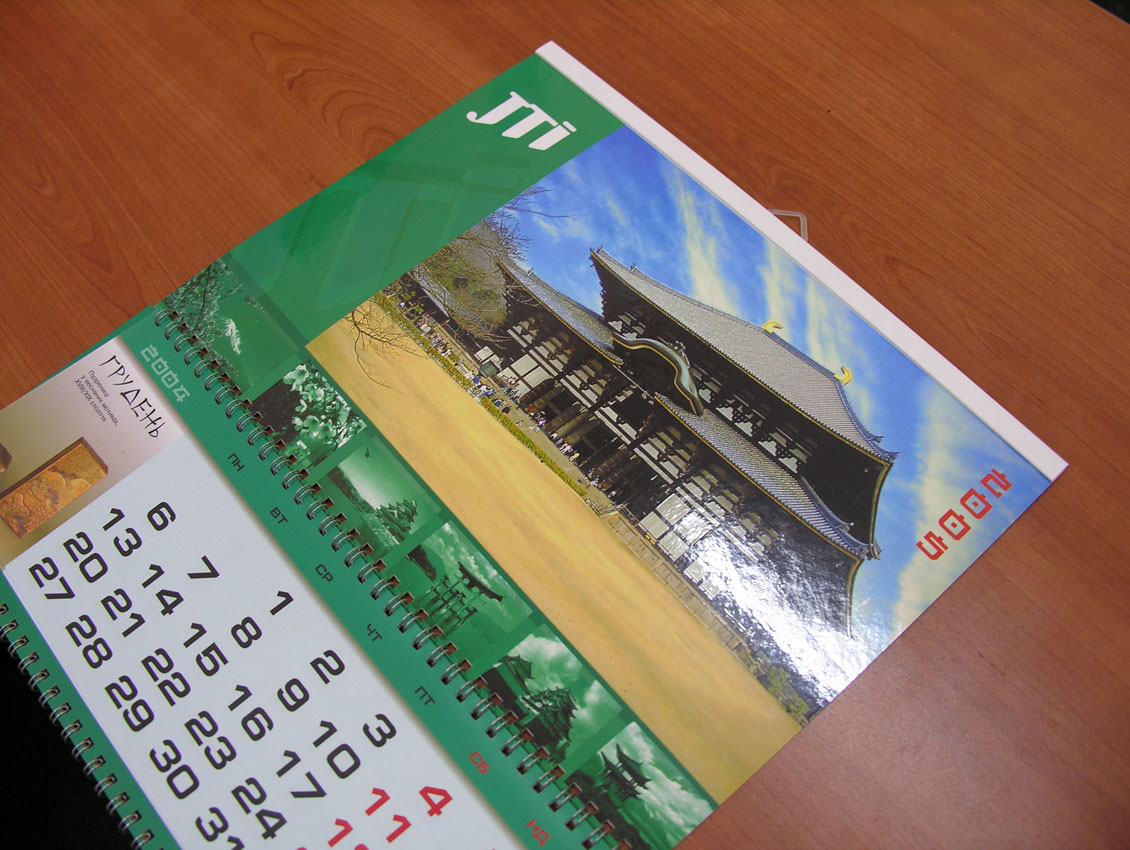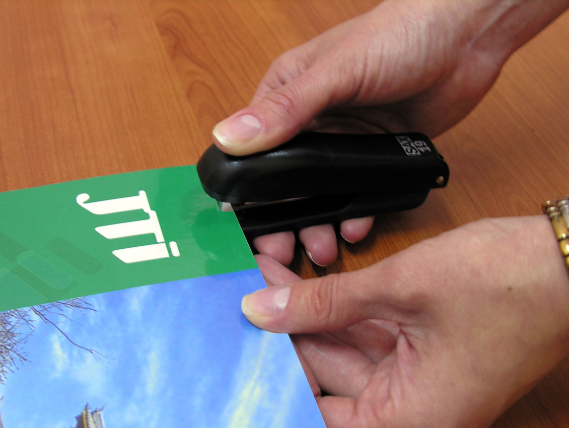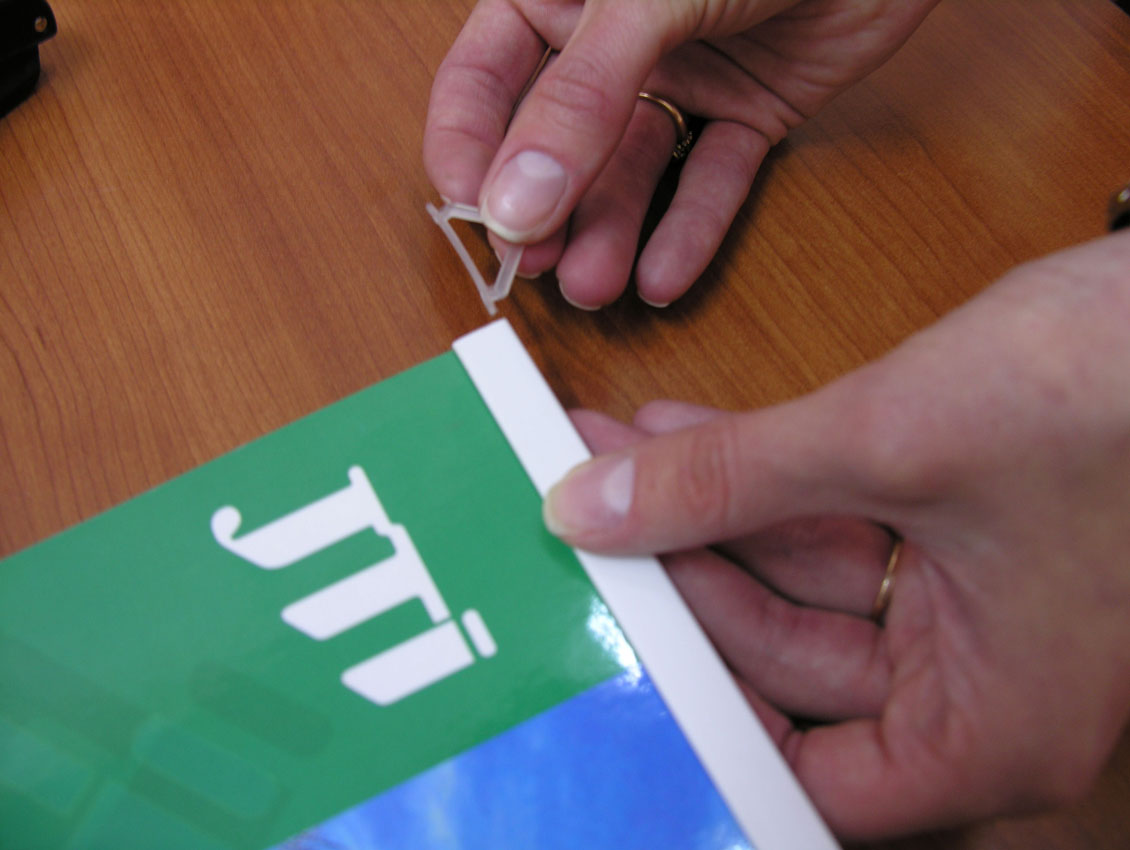 - С помощью степлера на расстоянии 5 мм от края календаря крепим две скобы (фото 1). Скобы удержат профиль на краю календаря.