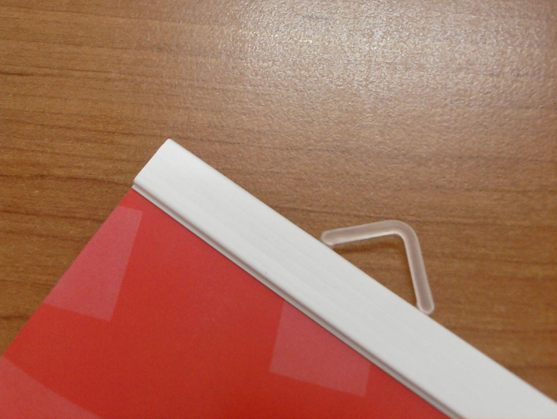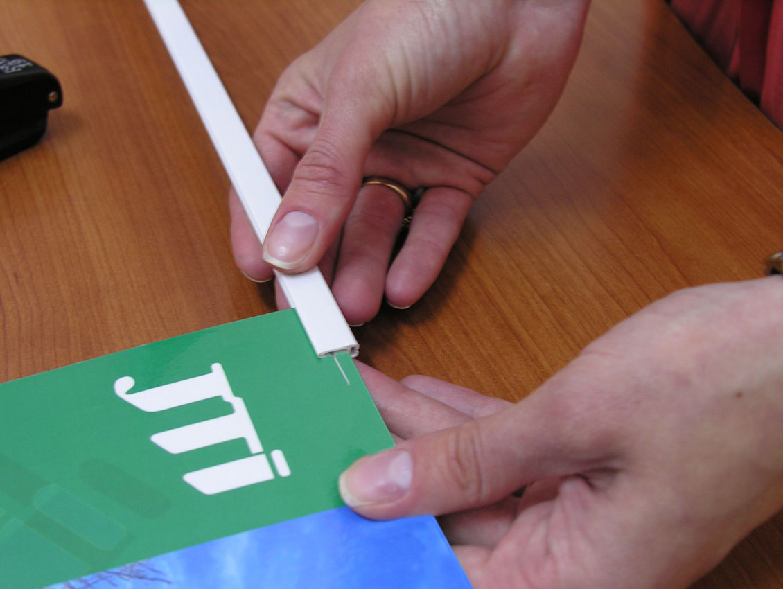 Пластиковый профиль № 11 (также называемый как «планки для плакатов и календарей») применяется для подвешивания настенных календарей, плакатов и постеров. Плакат (календарь) заводится в паз профиля и удерживается с помощью канцелярских скоб, предварительно закрепленных на краю плаката (календаря). Использование профиля № 11 не требует специального оборудования.