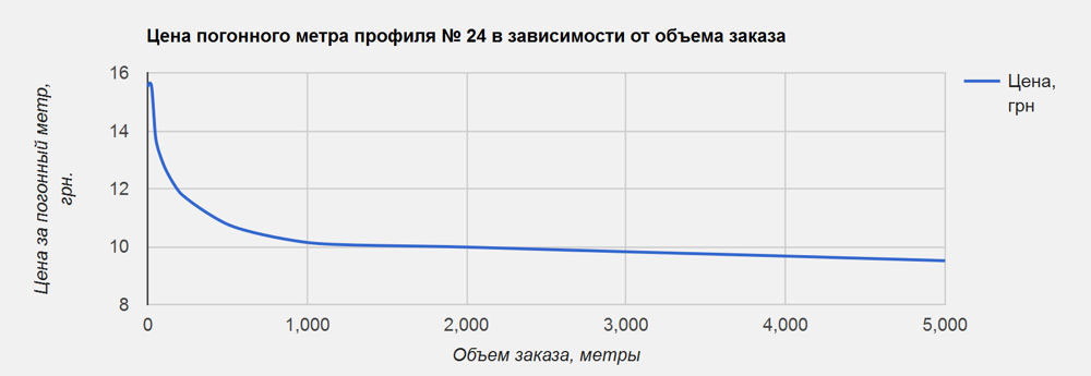 | Цена пог. м, грн. | 27.33 | 24.38 | 22.69 | 21.01 | 19.04 | 17.93 | 16.81 |